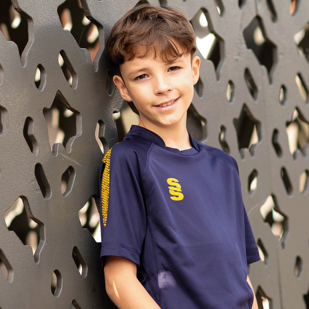 The Dual Games Shirt is made for performance with excellent polyester pique fabric. It's built with contoured underarm side panels in a breathable reverse pique fabric, a forward side seam detail and flat-lock stitching for ultimate smoothness and comfort. It features a stand collar and raglan seam sleeves, with available contrast colour graphic prints available on the shoulders. A choice of our Surridge SS logo and dual print colours to suit your branding. Our Surridge SS logo is situated on the right chest.